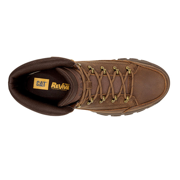 Bota Cat para hombre elaborado en piel con agujetas, punta redonda, textura lisa y altura de suela de 3.5 cm. Elaborado con cuero de la más alta calidad. Forro de malla de nailon suave y transpirable, plantilla de espuma acolchada y talón de entresuela de EVA duradero y liviano. Cuenta con tecnología WATERPROOF, posee cuero impermeable, costuras selladas y membranas que mantienen el agua fuera del zapato, esto hace que el pie se mantenga seco a pesar de la lluvia y elementos externos del ambiente.