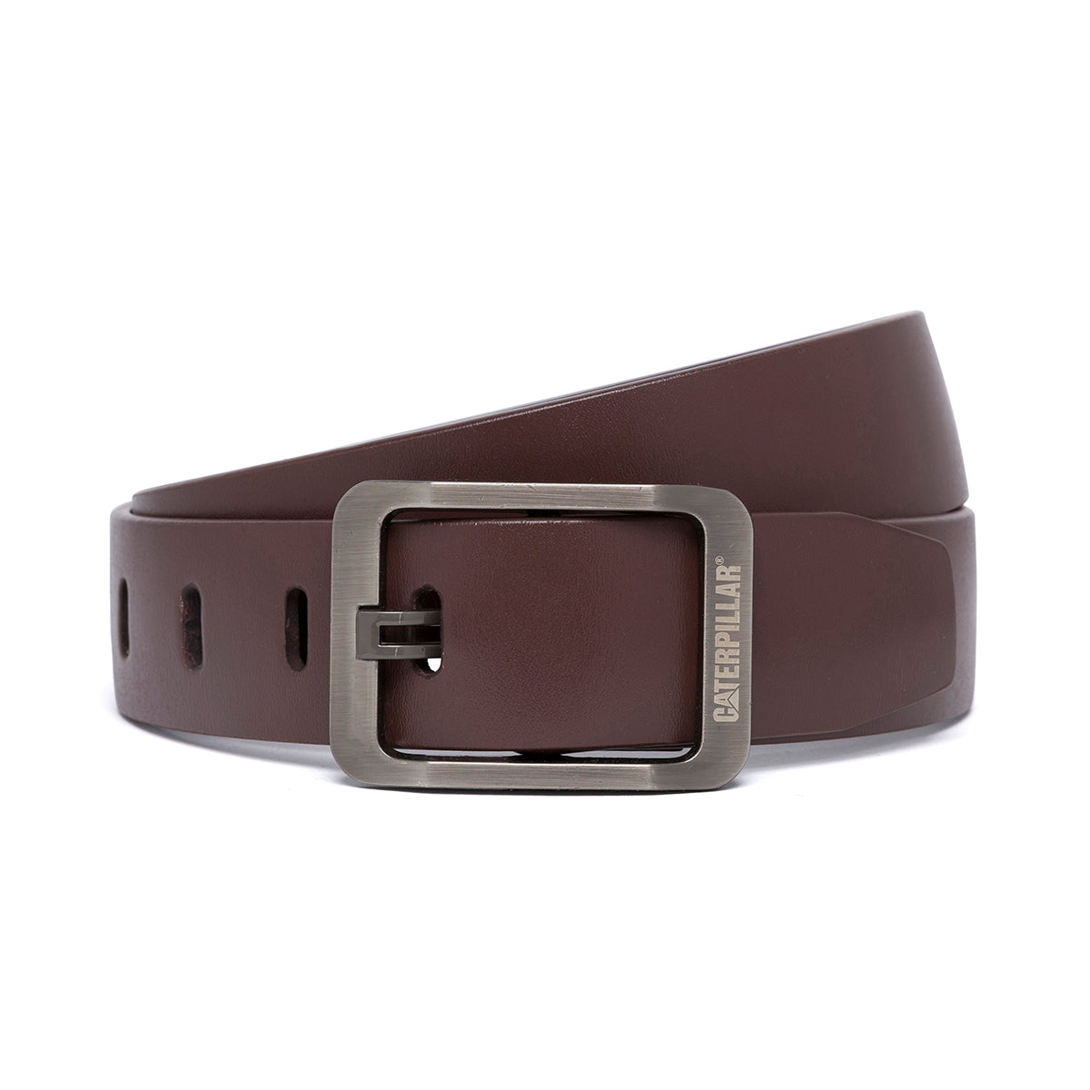 Cinturón de cuero de correa ajustable, hecha de cuero resistente, con hebilla metálica y perforaciones. Se adapta a estilos formales o casuales.