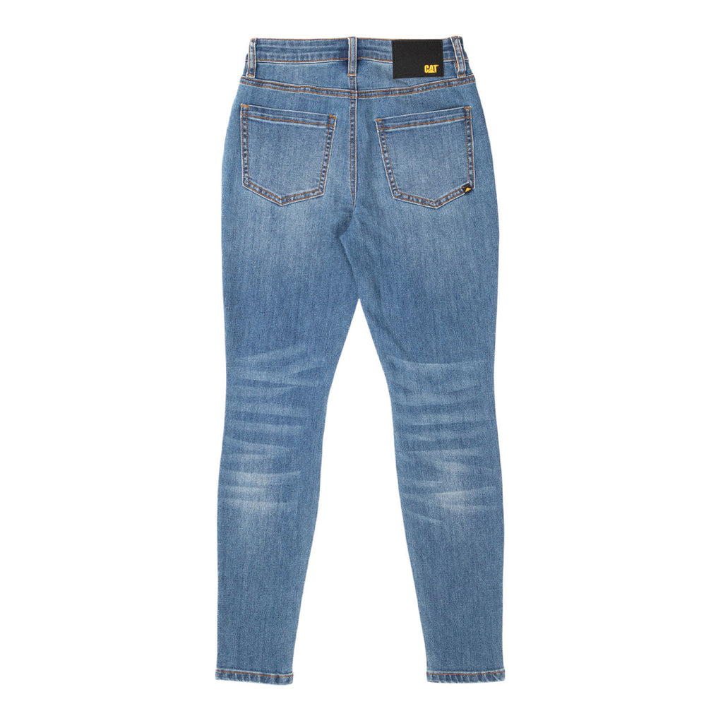 Eleva tu colección de mezclilla con los jeans de pierna ancha de mezclilla elástica TriBlend CAT® para mujer. Con bragueta con cremallera y cierre de caña con la marca, diseño de cinco bolsillos, remache con el logo en el bolsillo para las manos, parche con el logo de Oxford CAT® en la cintura trasera y una etiqueta cruzada triangular en el bolsillo trasero de parche para brindar estilo y comodidad sin esfuerzo.