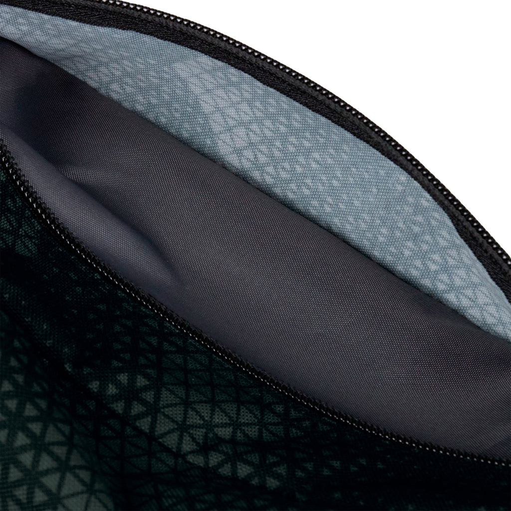 Bolso compacto fabricado en poliéster 600D de alta densidad (100%), con dos compartimentos principales con cierre, un bolsillo plano oculto con cremallera en el panel trasero y llavero desmontable. Incluye correa ajustable para el hombro para mayor comodidad. Sus dimensiones son 26.5 x 15 x 12 cm, con una capacidad de 2 litros y un peso de 0.2 kg.