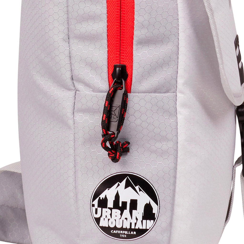 Bolso de 4 L fabricada en poliéster 300D hexagonal ripstop, con medidas de 18 x 29 x 6 cm y peso de 0.185 kg. Incluye compartimento principal con bolsillo interior, flap frontal, elementos reflectantes en logo y webbing, parche Hypalon y etiqueta tejida Caterpillar para mayor estilo y visibilidad.