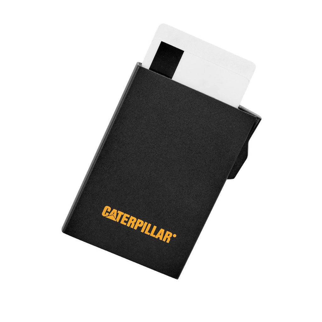 Cartera compacta marca Caterpillar con sistema de extracción de tarjetas, capacidad para 6 tarjetas, fabricada en aluminio ligero. Sus medidas son 6.5 x 9.5 x 1 cm, con volumen 0 L y peso de 0.06 kg.