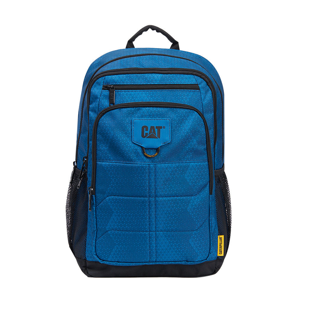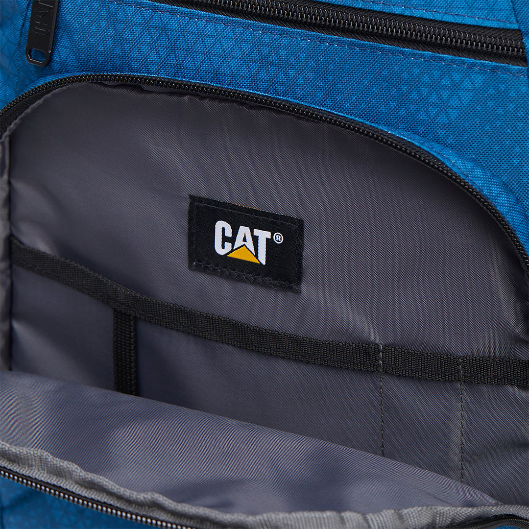 Mochila Caterpillar con múltiples compartimentos y organizadores, incluyendo funda acolchada para laptop y cierre expansible que añade 8 cm de profundidad. Cuenta con base reforzada 1680D, espalda y tirantes Airmesh acolchados, más correa de esternón ajustable. Medidas 30 × 45 × 14 cm, 30 L, 0.753 kg, poliéster 600D (100%).